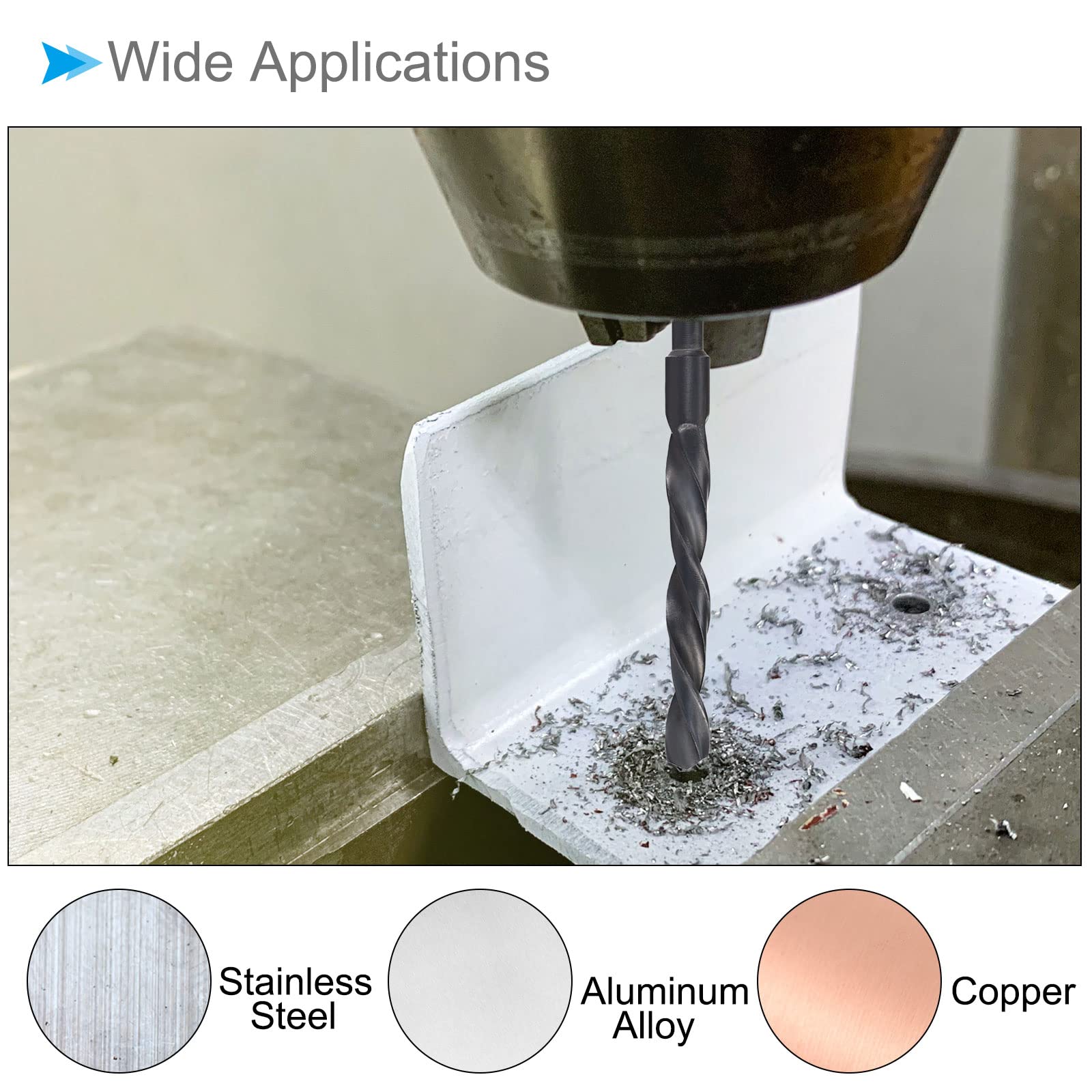 - ★ Wide Applications --- Widely used for drilling stainless steel, aluminum alloy, iron, copper, brass, hard wood, hard plastic. For use on drill presses and bench drills. Reduced shank drill bits expand the size range capacity of portable drill chucks.