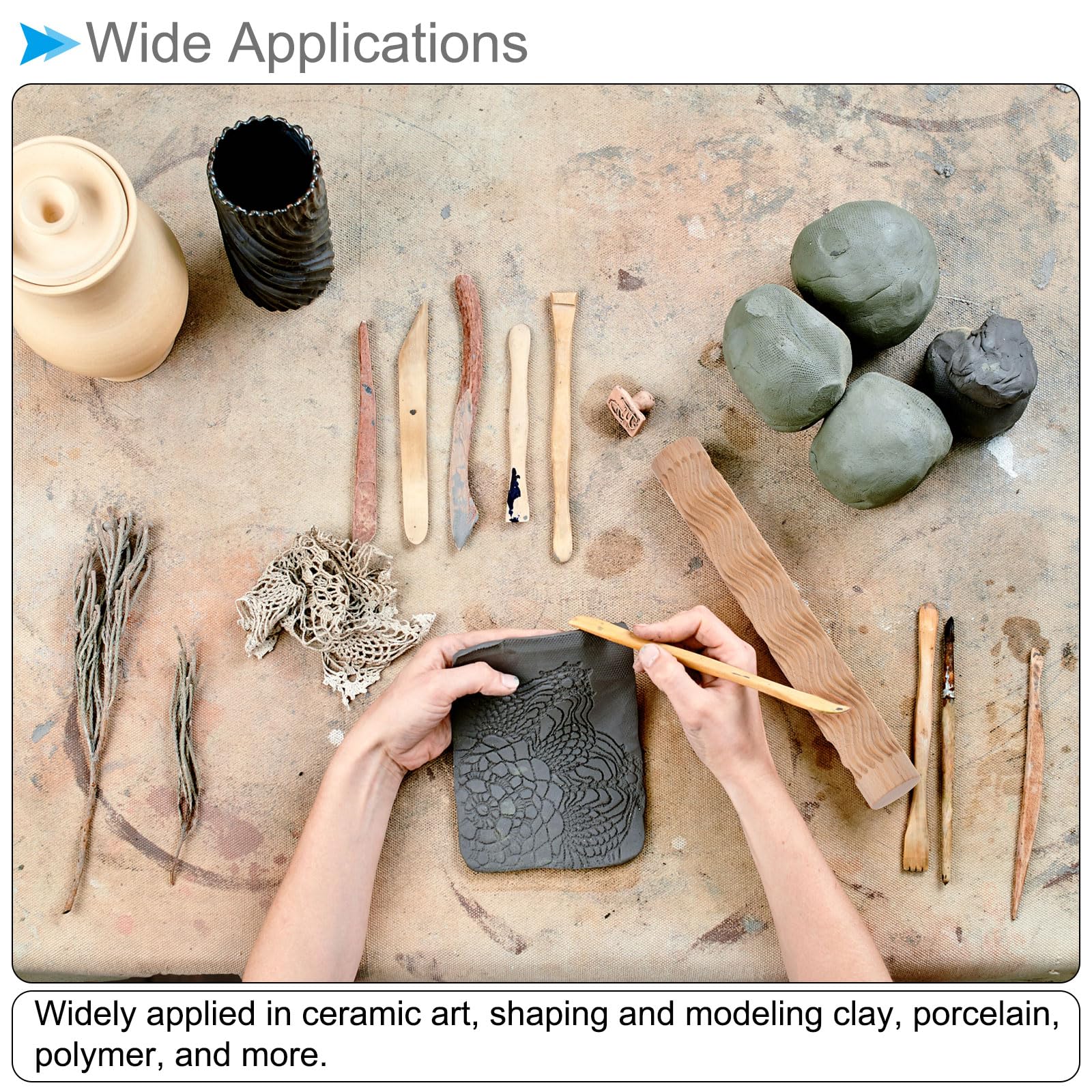 - ★ Wide Applications --- The wood clay roller is widely applied in ceramic art, shaping and modeling clay, porcelain, polymer, and metal clay. In addition, the texture roller is also suitable for baking, fondant, and pastry, adding some elegant and unique patterns.